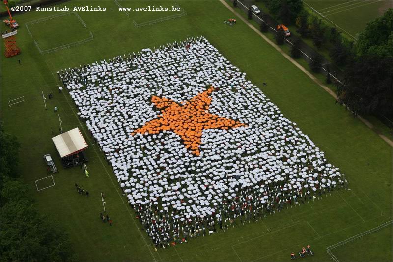 Op 16 mei 2007 creëerden wij van Kunstlab Avelinks vzw (gestopt in 2009) met 2880 leerlingen uit Brasschaat een levend monument voor de evenzovele gedode en zwaargewonde verkeersslachtoffers in het Belgische verkeer. De witte paraplu’s staan voor de gewonden en de oranje voor de dodelijke joeugdige verkeerslachtoffers in Vlaanderen in het jaar ervoor.